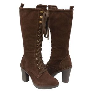 Juicy Couture MADLEY Suede Platform Lace-Up Tall Boot Heel Brown 6/6.5/9.5 New