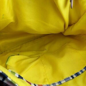 Juicy Couture satchel bag showcases a lively blend of yellow and pink stripes, offering a playful yet sophisticated look. Crafted with durable fabric and accented with classic leather trim, it combines style and functionality effortlessly. Perfect for those who love to make a bold fashion statement.