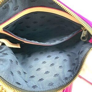 Juicy Couture Magenta Nylon & Chain Shoulder Bag. Perfect for evening or any occasion when you need a little glam in your day! Gorgeous iridescent magenta nylon exterior with vegan leather corners and strap accent. Gold chain strap and hardware. Gold Juicy Couture logo front and center. Zip top closure opens to black logo fabric lining and tan faux leather accents. One internal zip pocket. Strap drop is 20”. Dimensions: 10”W x 7”H x 1”D. Excellent preowned condition with one or two smudges on the pink exterior. See photos for more details. Happy to answer any questions!