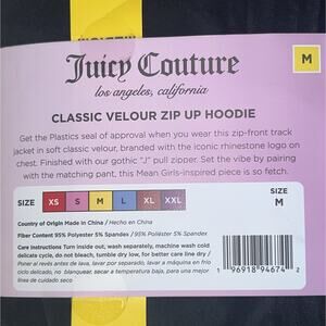 The hoodie is available in a women's size medium and features the iconic Juicy Couture brand name that adds a touch of style to your outfit. The hoodie has a zip closure that makes it easy to put on and take off. The hoodie is perfect for anyone looking for a stylish and comfortable hoodie that can be worn for any occasion.