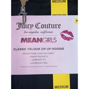 Juicy Couture Mean Girls Classic Velour Zip Up Hoodie Women’s M Black