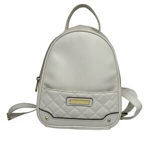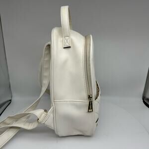 Juicy Couture Medium All White Vegan Leather Backpack Quilted Front Gold Accents