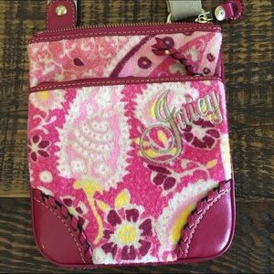 Juicy Couture velour & leather pink paisley messenger bag. Perfect condition