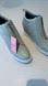 Chic high-top sneakers with a metallic silver finish. Front zipper for easy wear. NWT light scuff marks on sole and light dirt on shoe from storage.