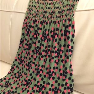 JC 2009 Spring collection. Mixed cotton; green+pink+blue polka dot; stretchable tube top; flaring finish. This style today is a RARE find. Made in USA with imported fabrics. Minor wears: only minor broken linen on the side but that's amendable. Flawless otherwise. A must-have piece for summer. Retail price (price back then): $119.