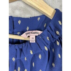 Juicy Couture Navy & Gold Polka Dots Tie Sides High Neck Dress Women’s XS