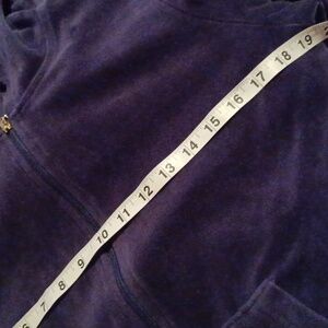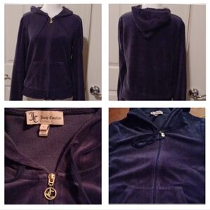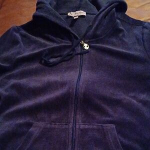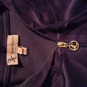 Stylish navy zip-up jacket with gold zipper. Features Juicy Couture branding.