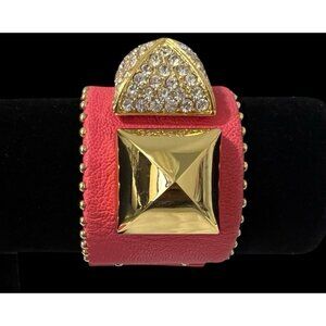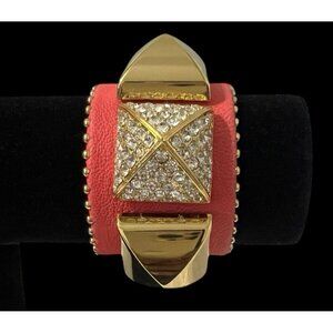 Juicy Couture Pave Pyramid Cuff Bracelet 8" Pink Pyramid Studs Wide Band NWT