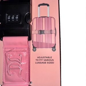 NWT - Juicy Couture Pink Adjustable Luggage Suitcase Strap with Combination Lock. Features a secure locking buckle that is designed to stay in place, ensuring your luggage remains safe and secure during travel. Easily adjustable to fit various sizes. BRAND NEW, never been used, flawless condition. Offers welcome!
