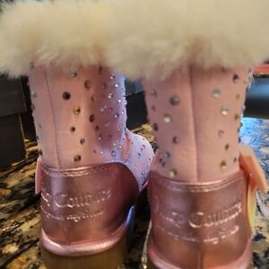 Juicy Couture Pink Fur-Lined Boots with Rhinestones