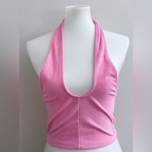 Juicy Couture Pink Halter Crop top Jeweled Juicy Logo
