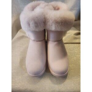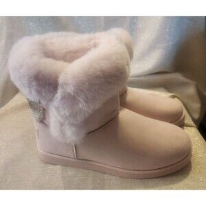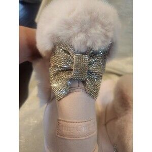 Juicy Couture Pink Krazey Kute Glitter Bow Faux Fur Lined Ankle Boots Size 10