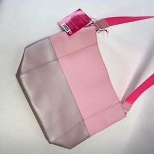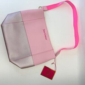 Juicy Couture Pink Leather Tote Bag New Open Top Snap Closure Colorblock