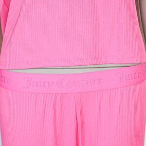Pink ribbed fabric with Juicy rhinestone logo on the top and the side of the leg of the pants