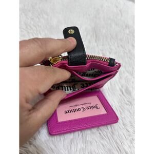 Juicy Couture Pink Pebble Gold Heart Logo Zipper Leather Bi-Fold Wallet 4.5"X3.5