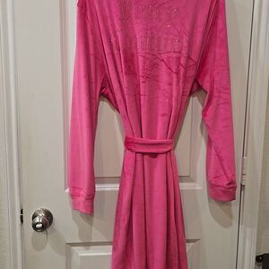 Juicy Couture Pink Rhinestone Logo Velour Robe- Pink Yarrow
