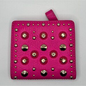 Juicy couture EUC wallet is very cool. It features studs on one side and the juicy emblem on the other side. Interior is animal print, measures 4” x 3.5”.