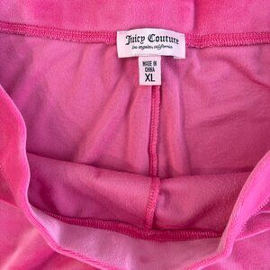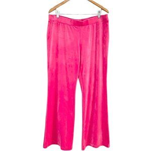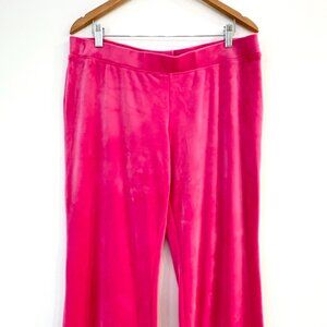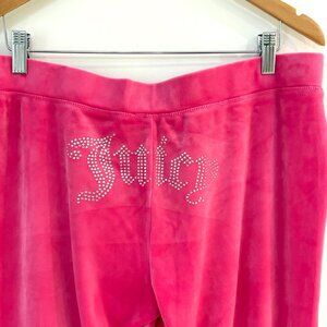 Juicy Couture Pink Velour Track Pants with Rhinestone Big Bling Wide Leg Sz XL