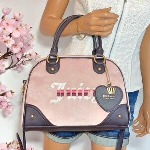 Juicy Couture Pink Velvet Y2K Velour Crossbody Purse Bag With Handles