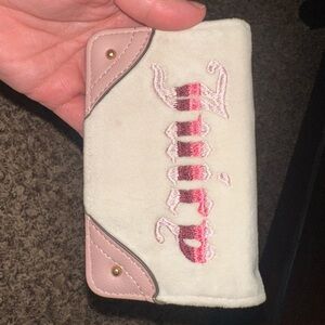 Chic and stylish, this Juicy Couture wallet features a soft pink and white design. Perfect for adding a touch of elegance to any outfit.