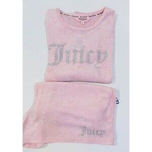 Rhinestone Juicy logo on front of top; On front of drawstring shorts.