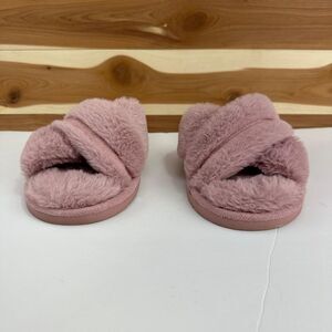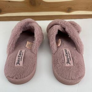 Juicy Couture Plush Fuzzy Cross Strap Slides Mauve Pink Cozy Slippers sz 9/10