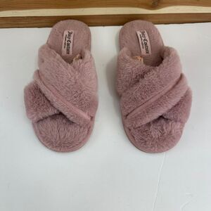 Title: Juicy Couture Plush Fuzzy Cross Strap Slides Mauve Pink Cozy House Slippers