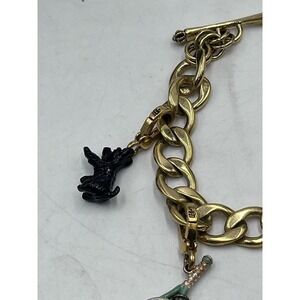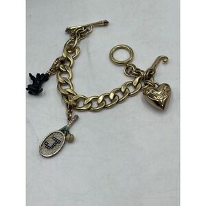 Juicy Couture Puffed Tennis Racquet Scottie Dog Heart Toggle Gold Tone Bracelet