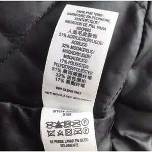 Pre-owned condition, small spots of light discoloration on front (5th & 6th pictures) and back (10th picture) of left sleeve and back of right shoulder (9th picture). Jacket originally came with removable fur trim for hood, which is missing.