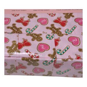 Juicy Couture Queen Sheet Set Candy Cane & Gingerbread 4 Pillowcases Polyester