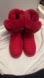 Bold red ankle boots with plush fur lining. Perfect for warmth and style.