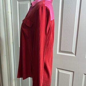 Juicy Couture Red and Pink Button Down Shirt with Collar Large 100% Silk