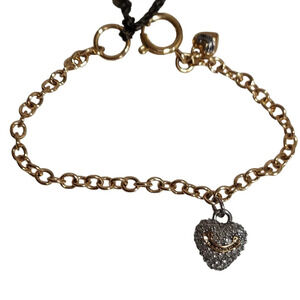 Juicy Couture Rhinestone Goldtone Double Hearts Link Bracelet with box Firm