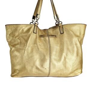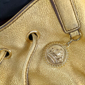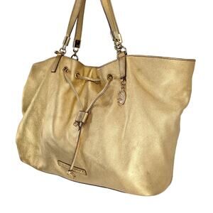 Juicy Couture Robertson Gold Pebble Leather Drawstring Handbag Purse Tote Bag