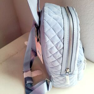 BRAND NEW with Tags and absolutely perfect Slate Blue Mini backpack, Ailver hardware. SOFT VELOUR quilted exterior with classic Royal Moment embroidery on front. Two pockets, one inner zippered pocket in main compartment.