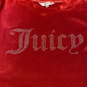 Juicy Couture Ruby Red LOGO L/S Scoop Neck Velour Top Size SMALL
