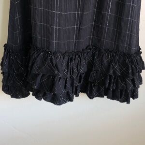 Black & silver metallic check Silk lurex shift dress with three tiered frilled hem