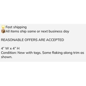 Condition: New with tags. Some flaking along trim as shown.