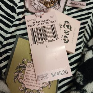Juicy Couture SWING Coat Sz L Black Angel Twist Black White Geo WOOL