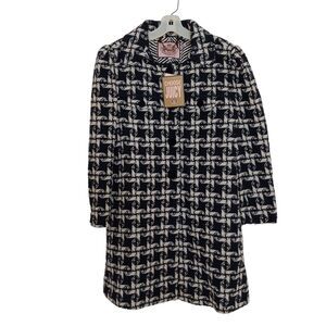Juicy Couture SWING Coat Sz L Black White Geo Houndstooth WOOL Angel Twist $448