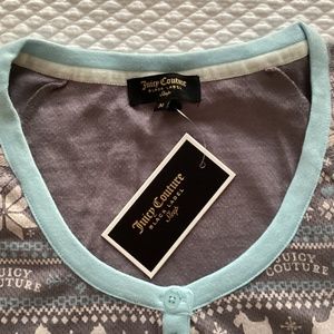 Cozy up next to the fire in these thermal pajamas by Juicy Couture. Long sleeve top with button bodice, embroidered Juicy Couture logo and heart charm. Jogger-style bottoms have a second heart charm detail. Adorable Scottie dogs, snowflake and logo pattern. Gray, and pale blue. Size Medium. 62% Cotton. 38% Polyester. Machine Wash Cold. Tumble Dry Low.