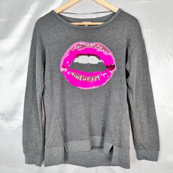 Juicy Couture Sequin Lip Graphic Sweatshirt Gray Pullover Women’s Medium
