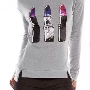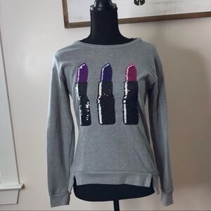 Juicy Couture Sequin Lipstick Pullover Lightweight Sweatshirt