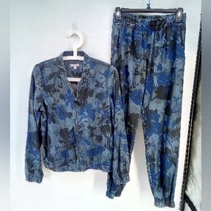 Juicy Couture Set Blue Floral Camo Camouflage Track Suit Jacket Joggers XS S