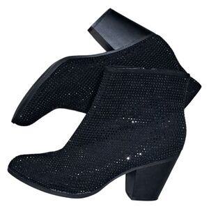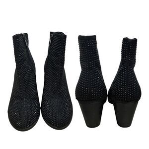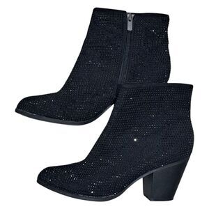 Juicy Couture Shimmer Rhinestones Whimsygoth Chunky Heel Ankle Boots Size 8.5 Black