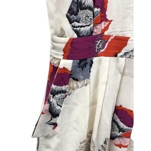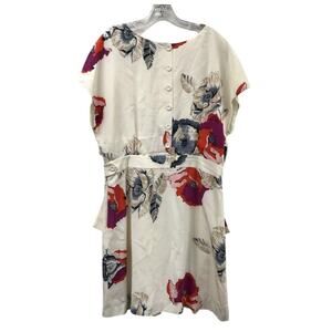 Juicy Couture floral A-line dress in 100% silk with original early 2000s label. Women’s size 14. Creamy white base with vivid poppy print in plum, coral, and gray. Features include pleated skirt, short dolman sleeves, side POCKETS and hidden back zip. Fully lined in acetate. This is a rare pre-Kohl’s Juicy piece—made before the brand shifted to mass licensing. Timeless and flattering for garden parties, weddings, or summer styling.