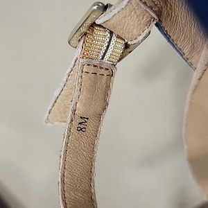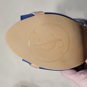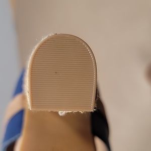 Juicy Couture Size 8 Blue and Tan Peep Toe Heels with Bows, NWOT