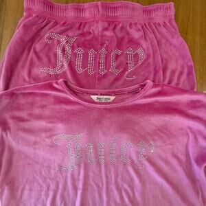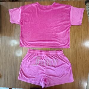 Juicy Couture Sleep Set Size L Velour Rhinestone Boxy Short Sleeve Shorts