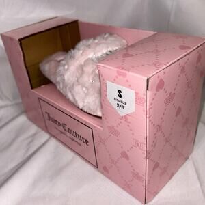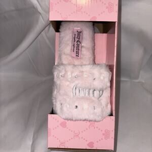 Juicy Couture Slippers Womens SMALL 5/6 Faux Fur Slides Pearl Logo Luxury NEW