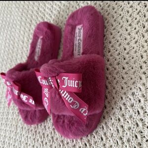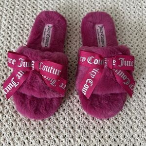 Juicy Couture Slippers Women’s Size 6 Fuzzy Cozy Faux Fur Pink Excellent
